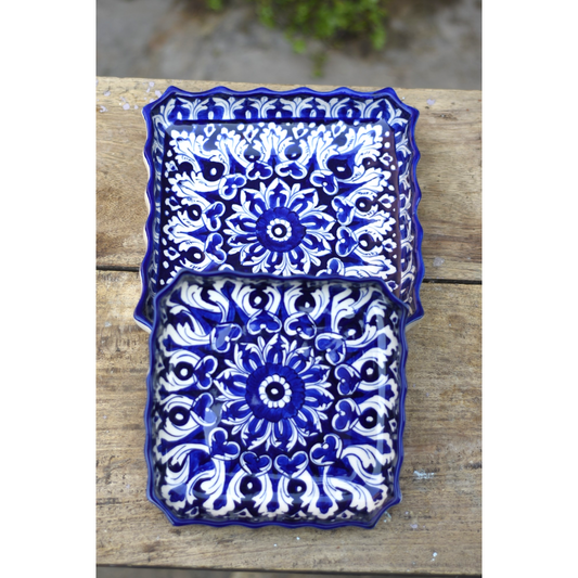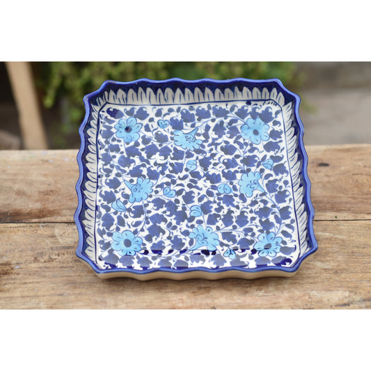 Floral White Dessert Serving Set(Square+plate)|Blue Pottery