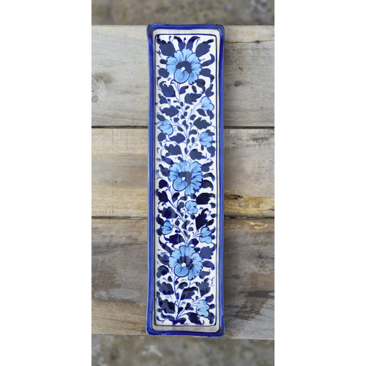 3 Piece Floral White kebab Serving Set(Long)|Blue Pottery