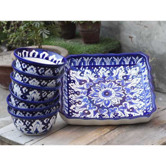 7 Piece Iconic Blue Serving Set|Blue pottery