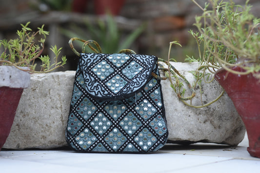 Handmade Kashmiri Aariwork and Glasswork Clutch